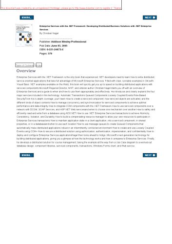 خرید و دانلود نسخه کامل کتاب Enterprise services with the .NET Framework: developing distributed business solutions with .NET Enterprise Services