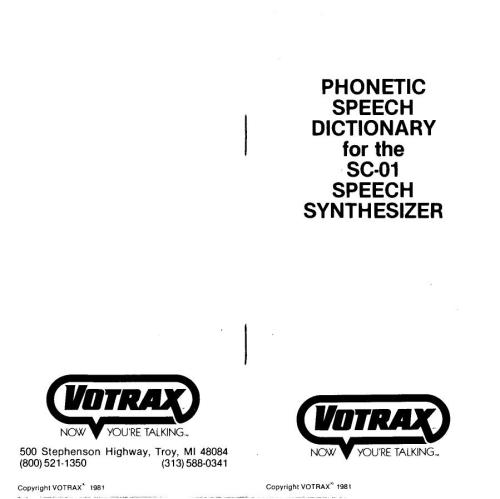 فرهنگ لغت گفتار آوایی برای SC-01 Speech Synthesizer |