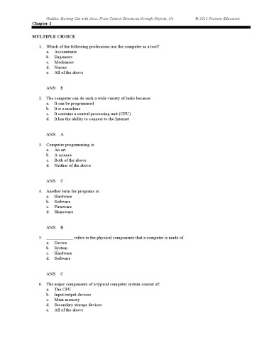 شروع با جاوا: از ساختارهای کنترل از طریق اشیاء ، Testbank |