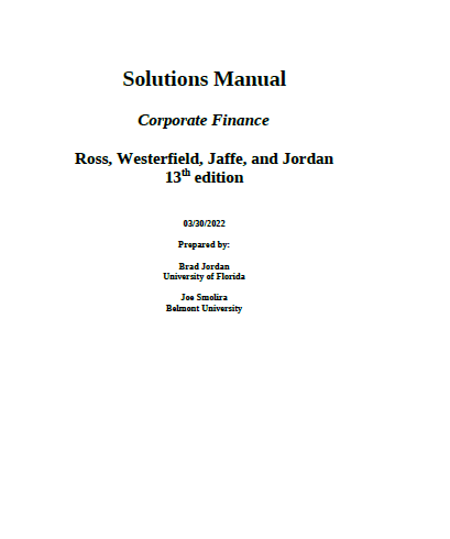 خرید و دانلود نسخه کامل کتاب [Solutions Manual] Corporate Finance (13th Edition) BY By Stephen Ross – Pdf