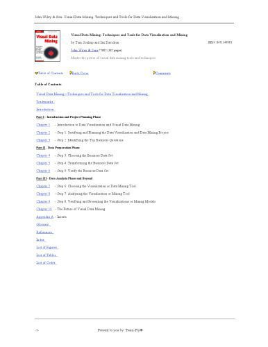 خرید و دانلود نسخه کامل کتاب Visual Data Mining: Techniques and Tools for Data Visualization and Mining