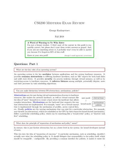 | عنوان اصلی | Graduate Introduction to Operating Systems (CS 6200): Midterm Exam Review Notes |